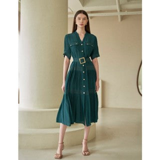 [DK SHOP] Versailles Henry Neck Belt Set Tiered Dress