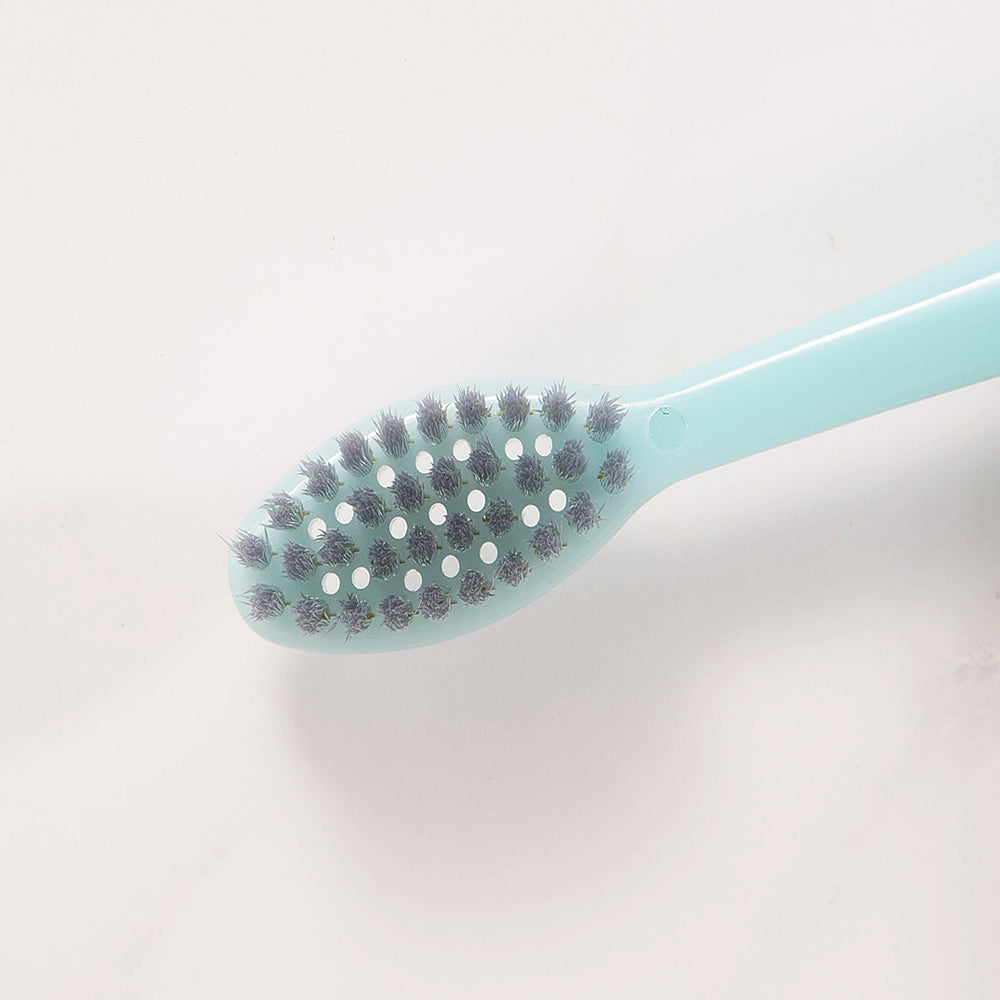 There are holes between the toothbrush hairs. After brushing, you can clean the inside of the toothbrush hairs with water pressure, wipe off the moisture and keep them for storage. The functional toothbrush is ventilated and dried quickly through the holes and always keeps clean. Existing toothbrush is difficult to clean the inside of the brush, the inside of the brush remains foreign matter, not easy to dry, become a hotbed of bacterial reproduction.