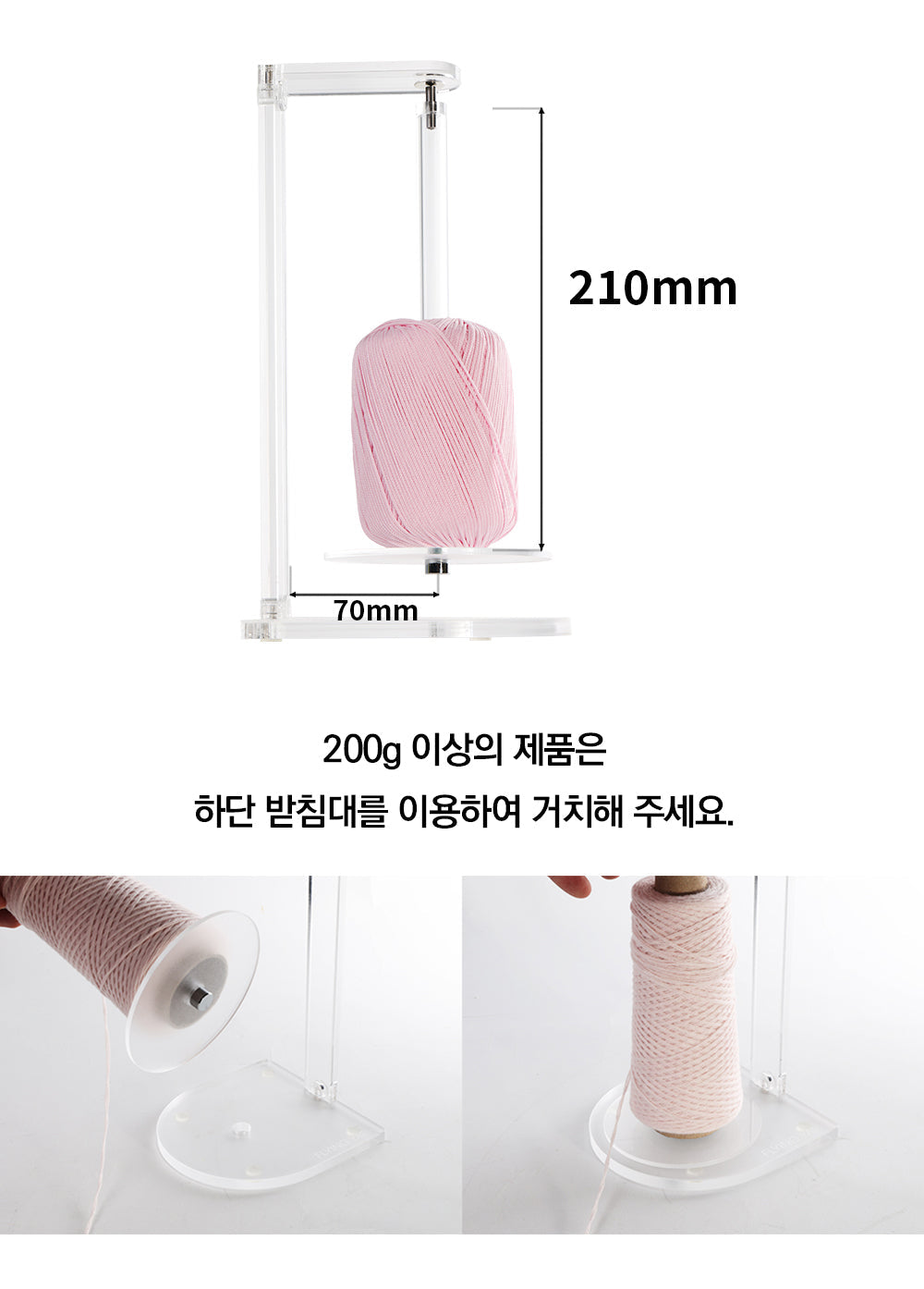 Please note that if the yarn has a diameter of 140mm or weighs over 200g and has a height of more than 210mm, it cannot be suspended using the magnetic feature. In such cases, please use the bottom support base to hold the yarn.