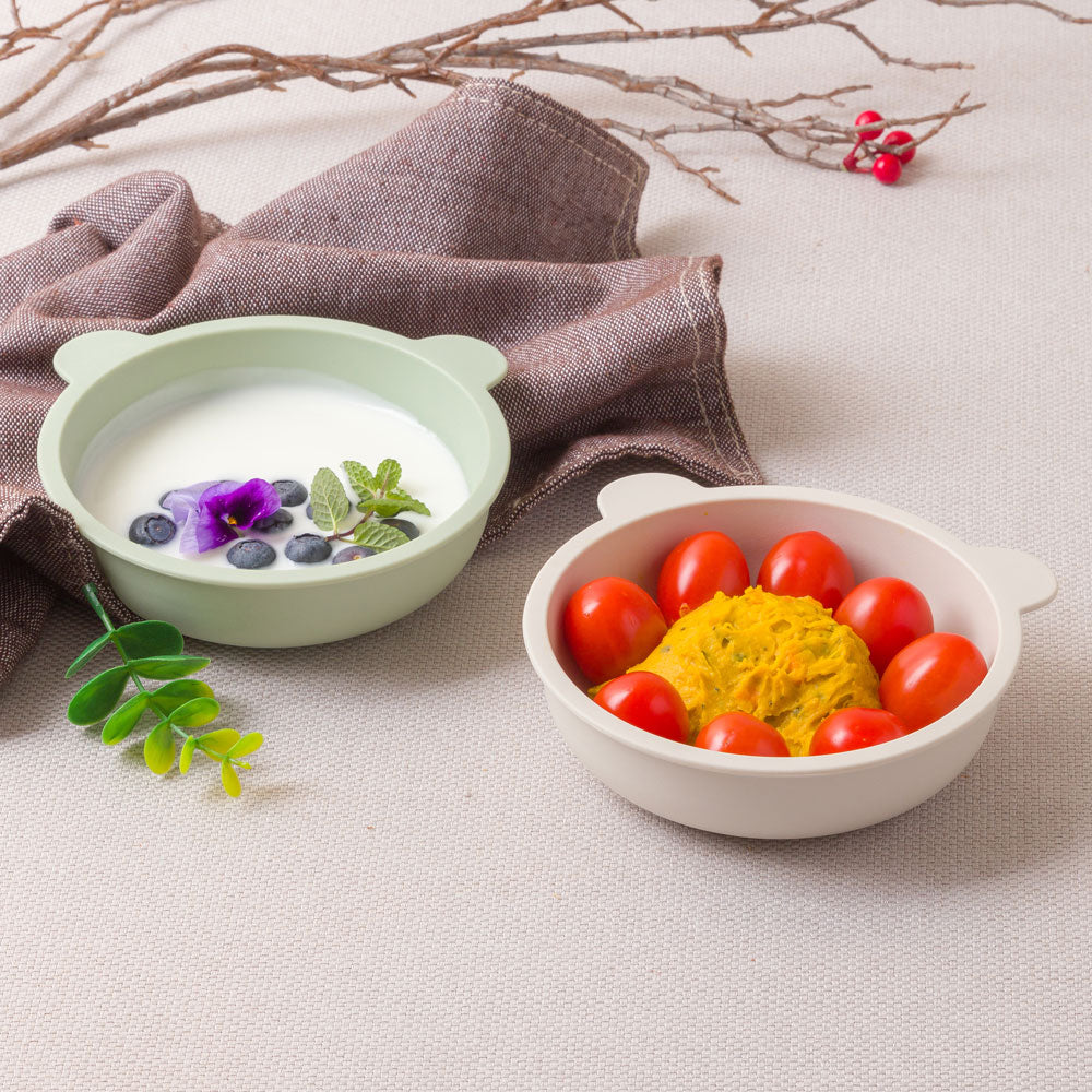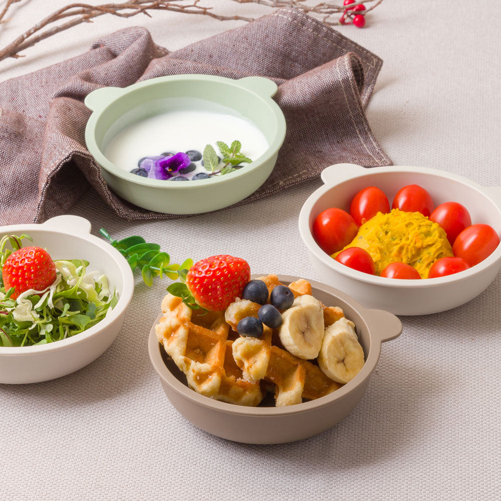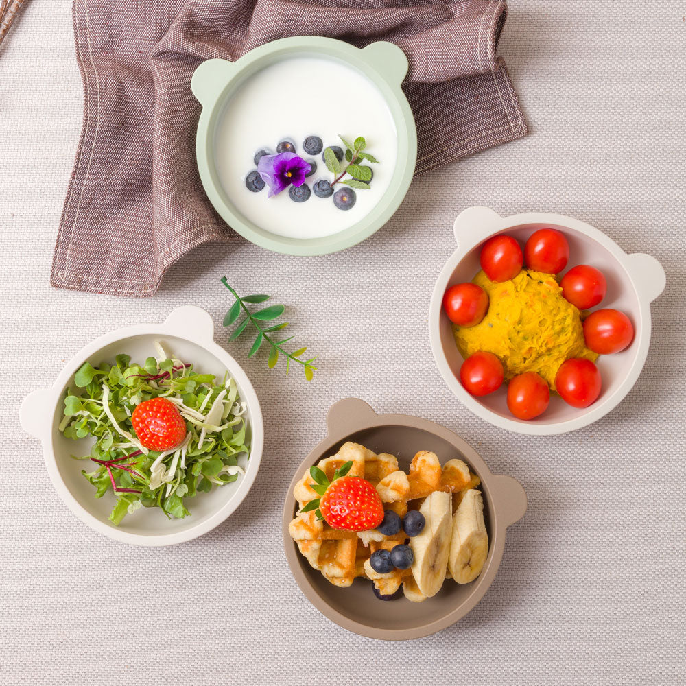 This bowl features a forest-themed baby bear design with modern colors, perfect for serving yogurt, cereal, fruits, and other desserts. It can also be used as a side plate or for children's snacks.