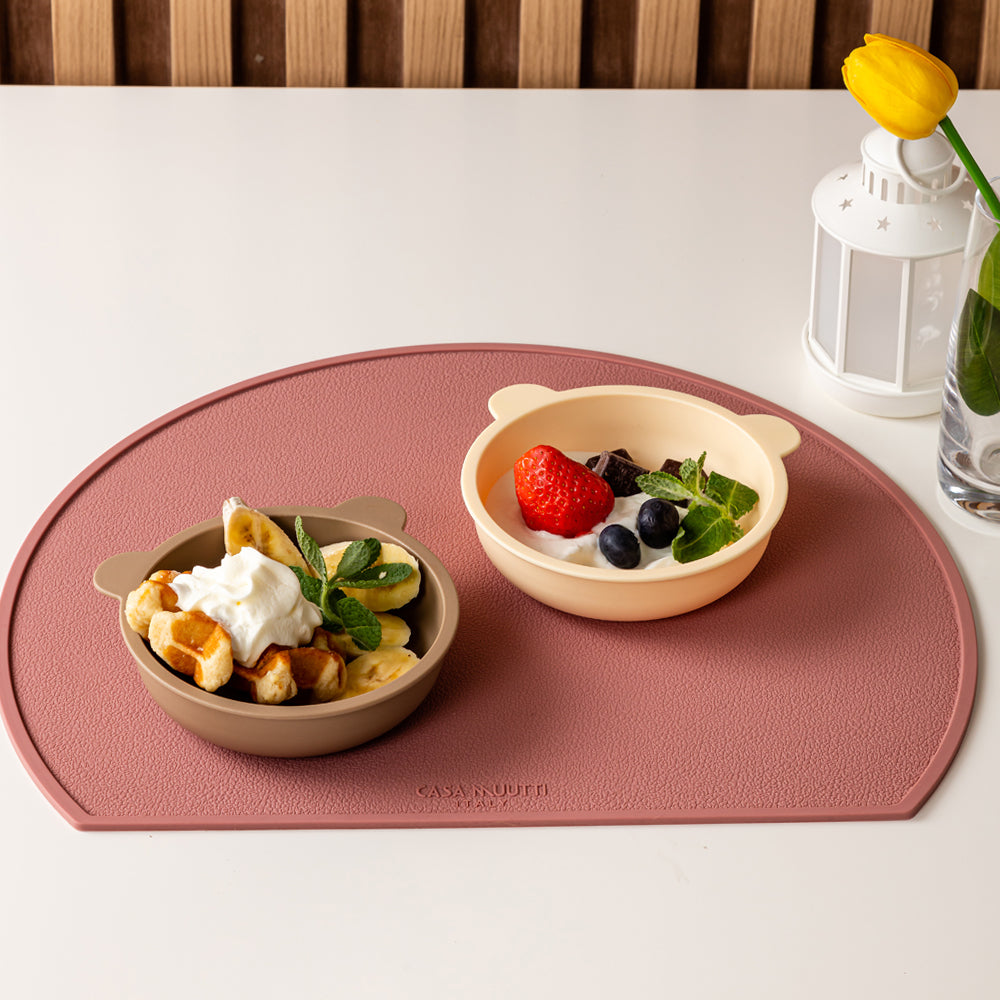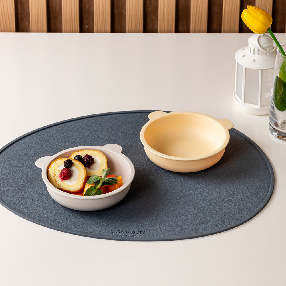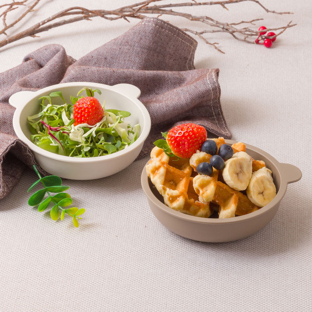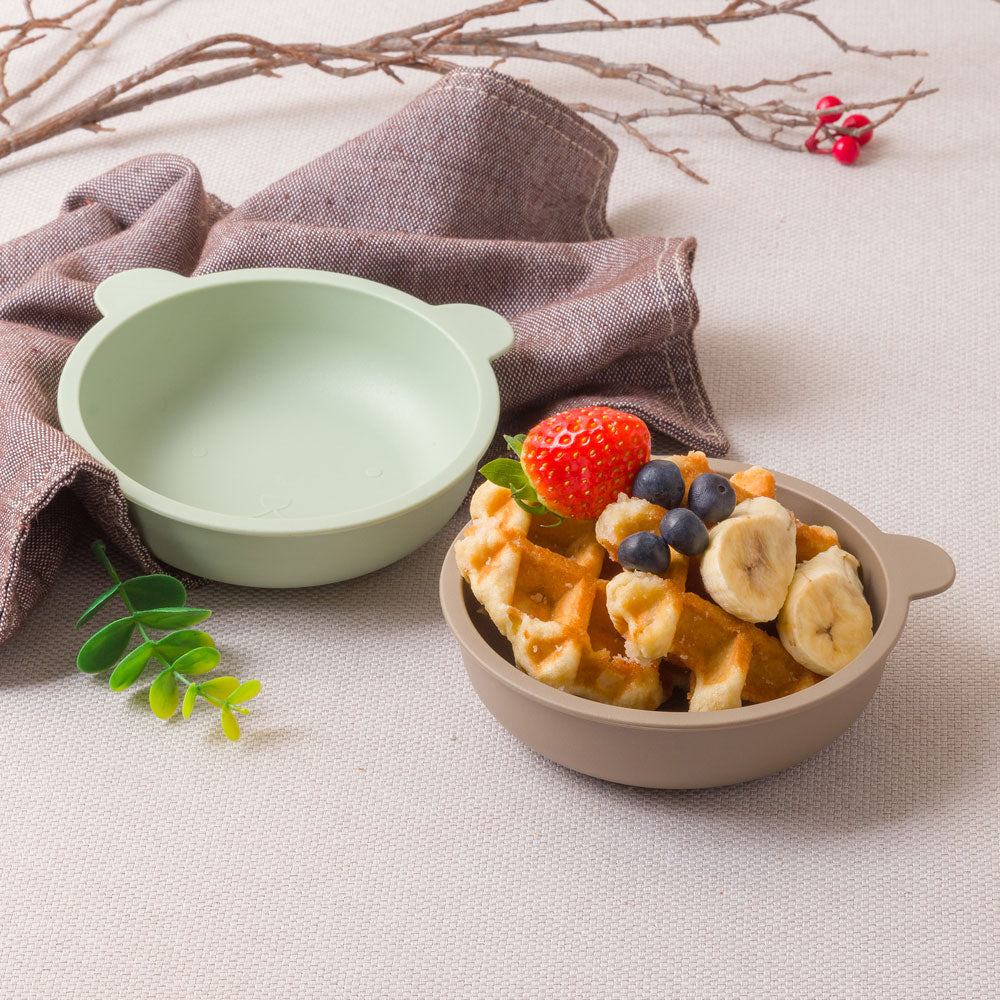 This bowl features a forest-themed baby bear design with modern colors, perfect for serving yogurt, cereal, fruits, and other desserts. It can also be used as a side plate or for children's snacks.