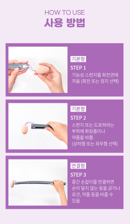 4. Compatible with puffs, sponges, and massage rollers, which can be attached to the rotating mechanism according to the desired purpose.