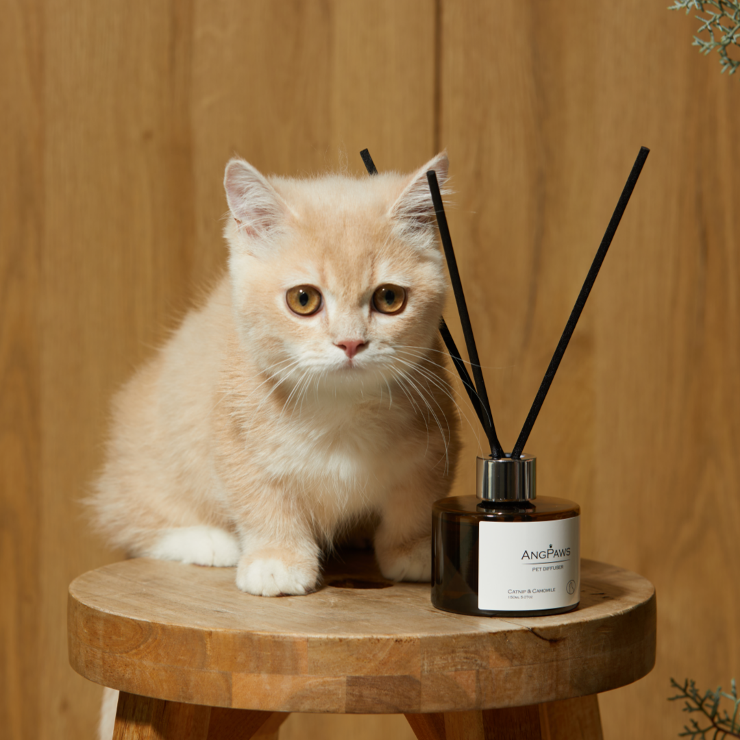 - A soft blend of chamomile and catnip helps relieve stress and tension in cats while stimulating playful behavior.