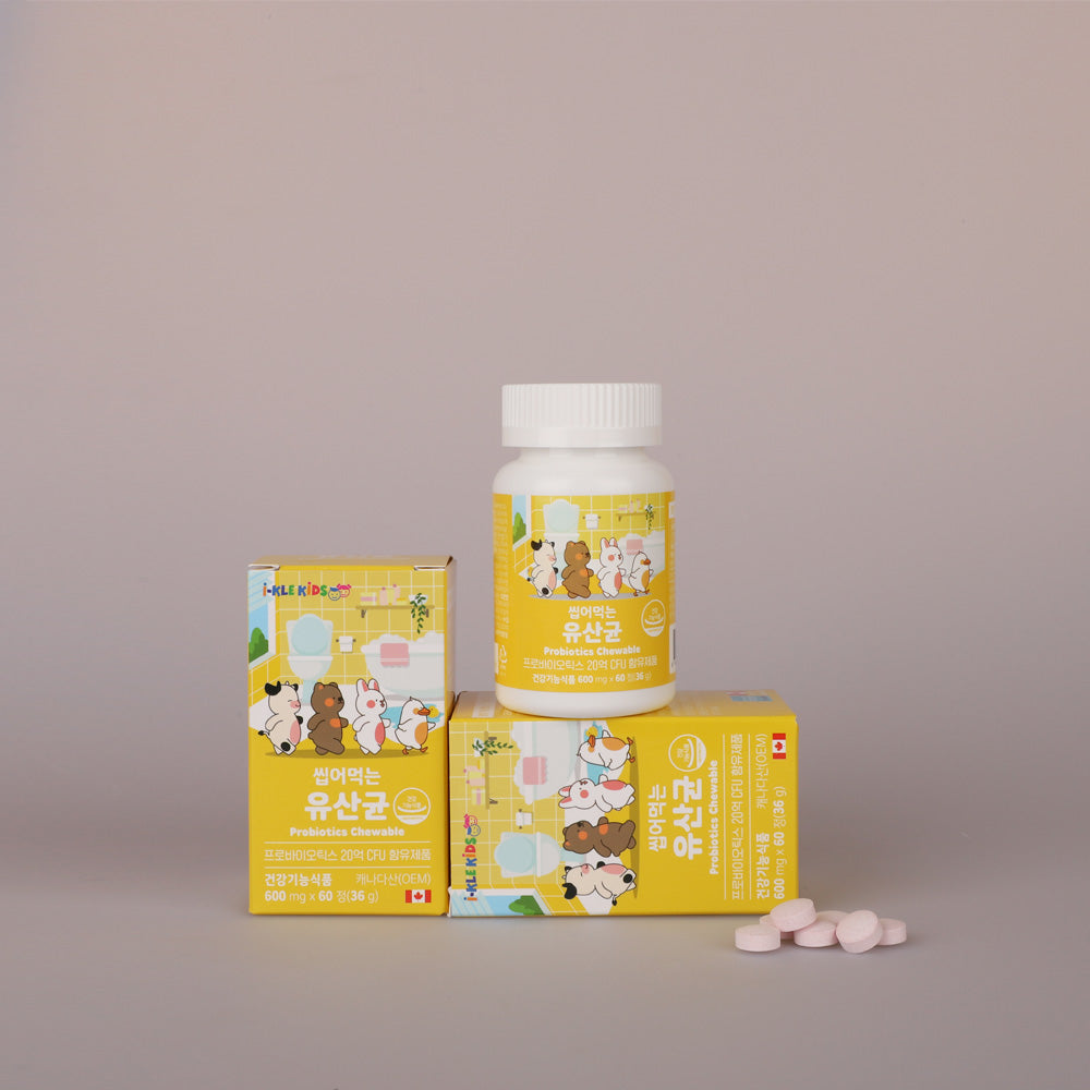 A strawberry-flavored chewable probiotic containing 2 billion CFUs per tablet, with a soft texture and no powder mess—easy and enjoyable for all ages.