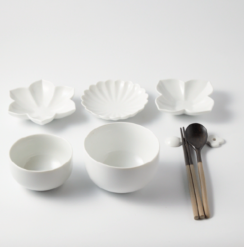 - Composition: Plain rice bowl (1p), soup bowl (1p), and three-piece side dish set