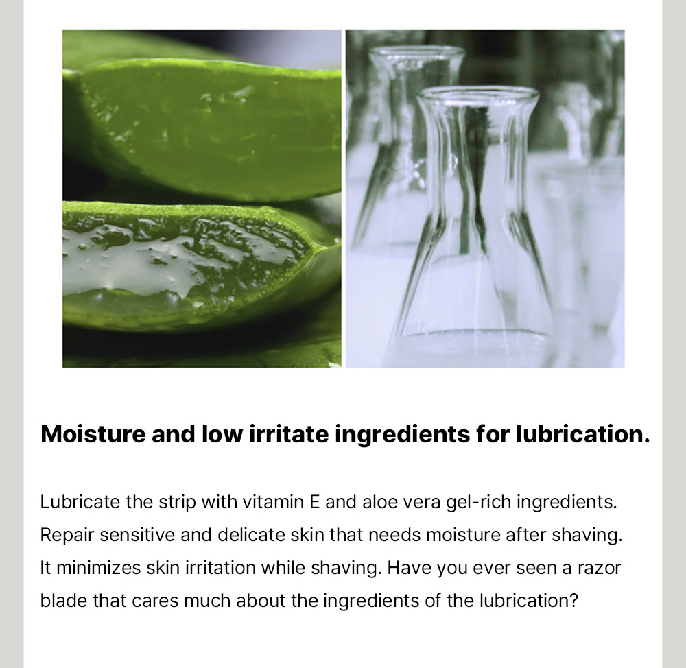 Fuction: Cica Shaving Gel - calms and soothes the skin. Reduces friction between the blade and the face and lower down the risk of scratching. 5-Blade Razor - shave the facial hair.